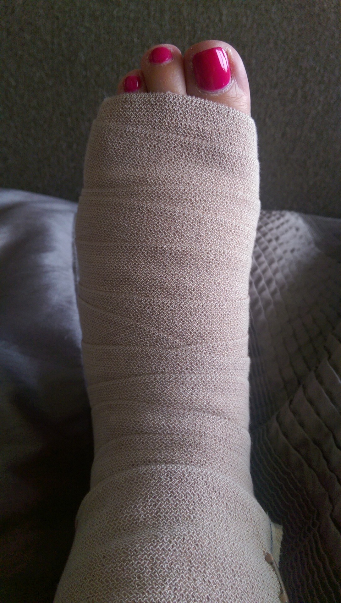 Today is 3 weeks from my last surgery and I’m doing great! The bruising is almost gone. I can take full showers without getting lightheaded. I am back to sleeping on my side (with pillows between my knees). I am no longer getting up a gazillion times to pee (last night I didn’t get up at all!). I still have swelling (to be expected for months to come). I am still sore and tight but getting better. What has helped significantly is a lymphatic massage (combination of MLD and massage). That really loosened up those tight muscles especially in my hamstrings.. But huge caution… Do *NOT* get a regular massage. It will cause swelling and bruising (I had someone lie to me about their credentials…) That set me back. Sitting is still the devil. But after I walk around for a little bit, I’m better. I wrap my feet at night to reduce the swelling and frankly my ankles feel so refreshed after wrapping them.